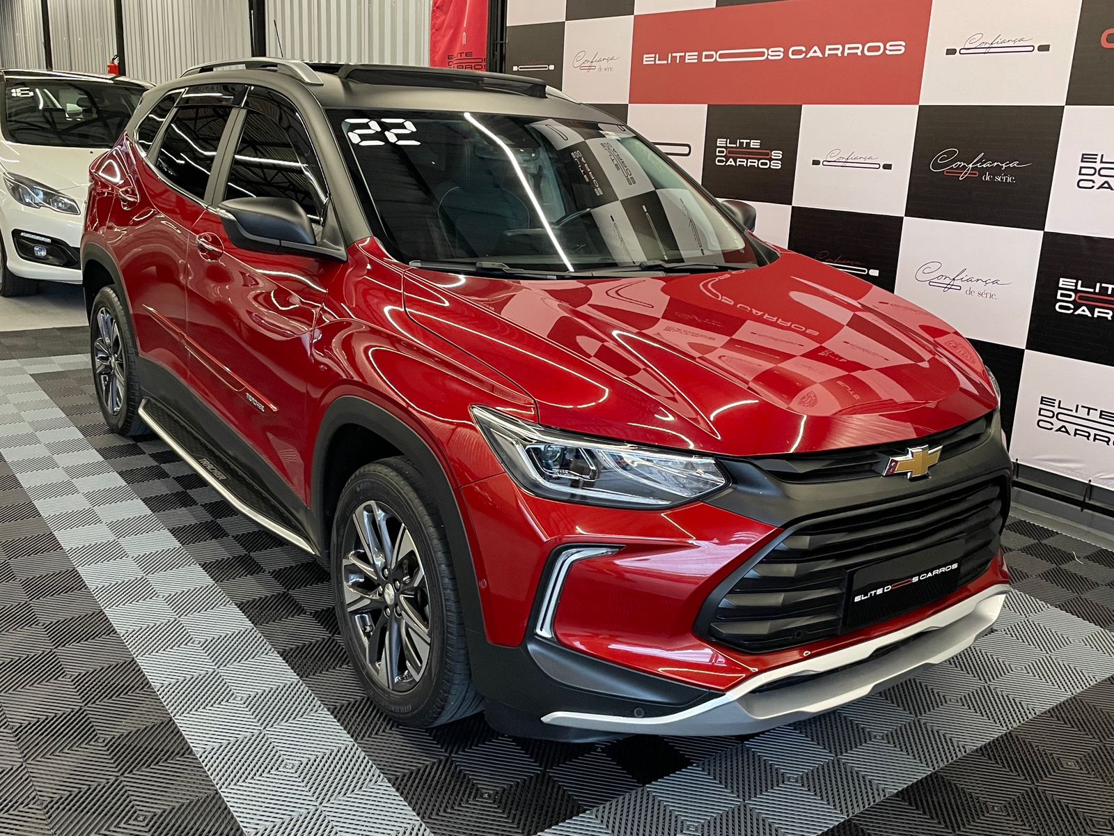 Chevrolet Tracker, versão Premier2 (com teto solar panorâmico), ano 2022, motor 1.2 Turbo Flex com 133cv e câmbio automático de 6 velocidades. Apenas 65 mil km. Recém revisada na concessionária (abril/2026). Placa i (RS). Acompanha todos os manuais do proprietário e chave reserva original. Versão Premier, top de linha, equipada de fábrica com com: Teto solar panorâmico; Bancos em couro bicolores; Carregador sem fio para Smartphones; Easy Park (estaciona sozinha); Anti colisão/frenagem de emergência; Faróis em LED; Alerta de ponto cego; Sistema de conectividade My Link2 (Multimídia com OnStar) com tela de 8 polegadas, Apple Car Play e Android Auto SEM FIO; Controle de estabilidade; Airbags diversos; Start Stop; Keyless/Partida elétrica/Chave aproximação; Sensores de estacionamento dianteiro, laterais e traseiro; Câmera de ré; Rodas de liga leve exclusivas; Freios ABS com EBD; Assistente de partida em rampa; Sensor de chuva; Ar condicionado; Direção elétrica; Computador de bordo com velocímetro digital; Trio elétrico; Faroletes, dentre outros opcionais.